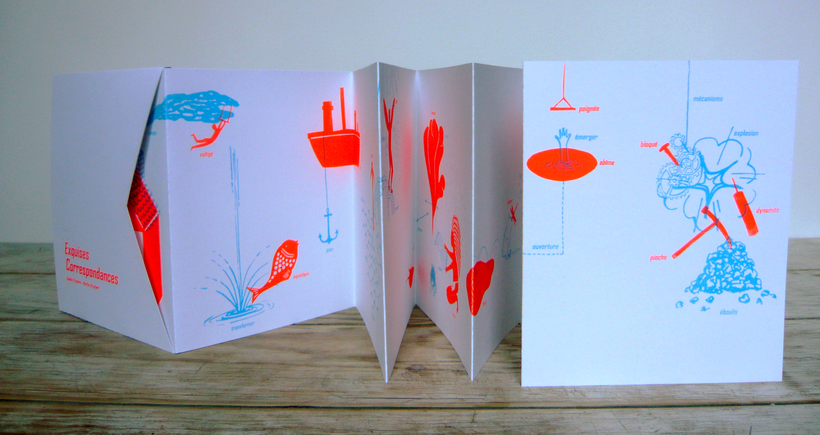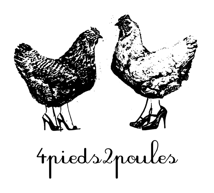 4pieds2poules est un duo (Marthe Drucbert et Sophie Vissière) pondu en 2007 à l’occasion d’un travail de design culinaire. Après des études en arts appliquées qui nous ont réunies, nous fonctionnons aujourd’hui sous forme d’échanges à distance, entre Paris et Toulouse, grâce a une grande complicité. Lorsque nous sommes réunies nous prenons du temps pour la réalisation de nos travaux. Nous nous soutenons aussi réciproquement dans nos projets personnels. Nos réalisations s’articulent entre graphisme, illustration et édition. Nous partageons un goût prononcé pour l’estampe et particulièrement pour la sérigaphie.