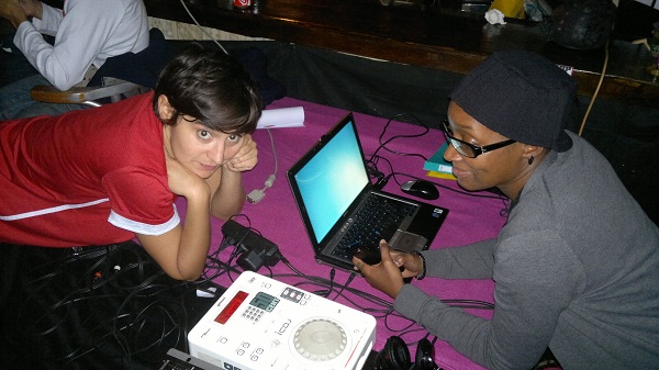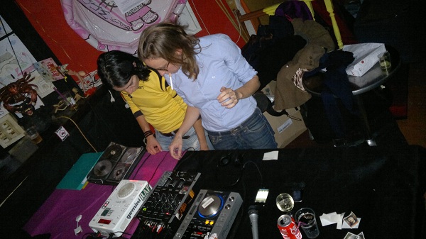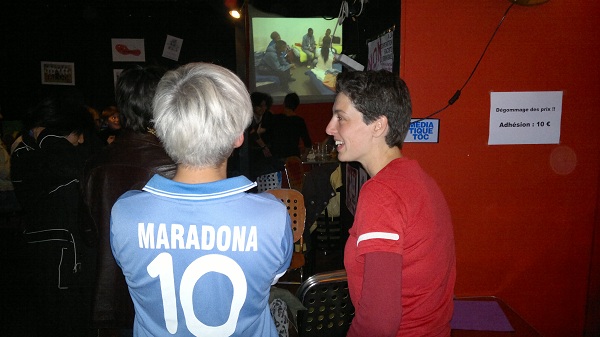 On s’est retrouvé à la Mutinerie vers 18h, histoire d’avoir le temps de déguster le warm-up de Dj Buitoni alias SoFFFoot* [2], d’installer le vidéo-projecteur pour les photos de Foot For Love, le stand pour les adhésions et le but pour les tirs au but. Sans oublier le temps necessaire pour pallier aux légers problèmes techniques.
