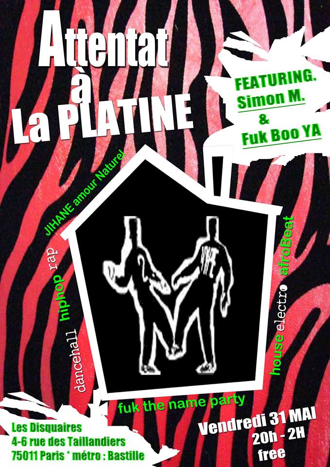 Bon ben ya quelque chose que t’as pas compris ? C’est Attentat à la Platine ! Fuk The Name en mode « fuk everybody I wanna dance, sex and lick it !!! » sur les nuages de l’amour, free hug, lap dance pour vous faire tourner la tête et vous faire le boom shake in da room dans l’air des Disquaires... et tout ça FREE