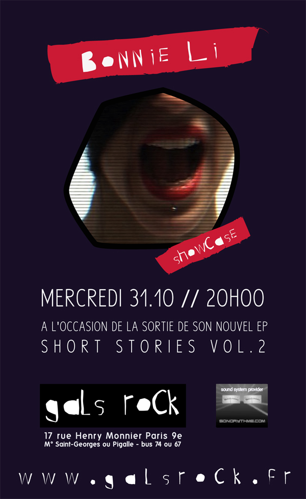 Lauréate de plusieurs tremplins musicaux (Sfr Jeunes Talents : Marsatac 2010, Les Francofolies 2011), la ravissante Bonnie Li est une des grandes découvertes à suivre, grâce à son Trip-Hop/électroclash de haute tenue". (C’est moi qui souligne)