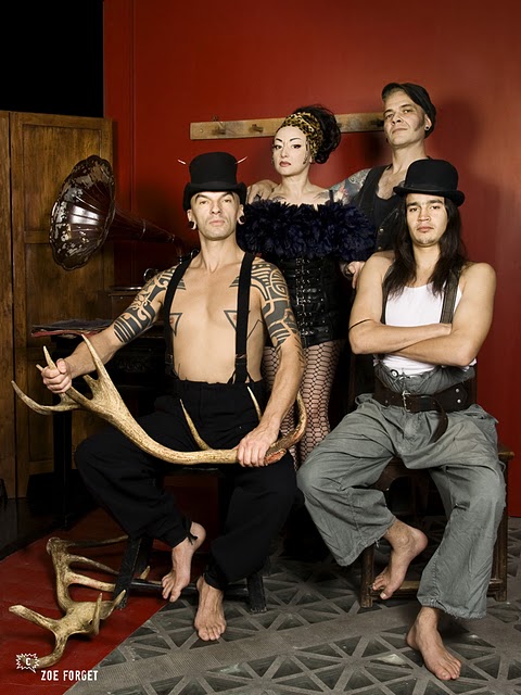 “78 RPM Selector est né d’une envie d’écouter du blues avec le son de l’époque. Les morceaux que nous passons s’étalent sur une période allant des années 20 à 1948 ou 49. Au début nous mixions surtout en petit comité, mais un jour le patron des Transmusicales nous a dit que les Residents cherchaient une première partie. Et c’est ainsi que nous nous sommes retrouvés à jouer devant 4000 personnes… La forme du spectacle a elle aussi beaucoup évoluée. Avec le 78 tours et les gramophones, le son est presque dépourvu de basses, c’est pourquoi nous avons imaginé lui adjoindre un beatboxer. Ezra est l’un des meilleurs beatboxers de sa génération et se produit avec le 78 RPM Selector depuis 2009. Surnommé l’Homme Rouge, Yann de Bitche apporte une dimension ultra-visuelle au spectacle. C’est un performeur hors-norme dont la gestuelle insuffle beaucoup de tension et d’émotion. Aujourd’hui nous avons également la chance d’être rejoint par l’artiste burlesque Lalla Morte, et par IPSS, un VJ qui mixera en temps reel des images de la revue HEY !” (Anne et Julien, créateurs de HEY !).