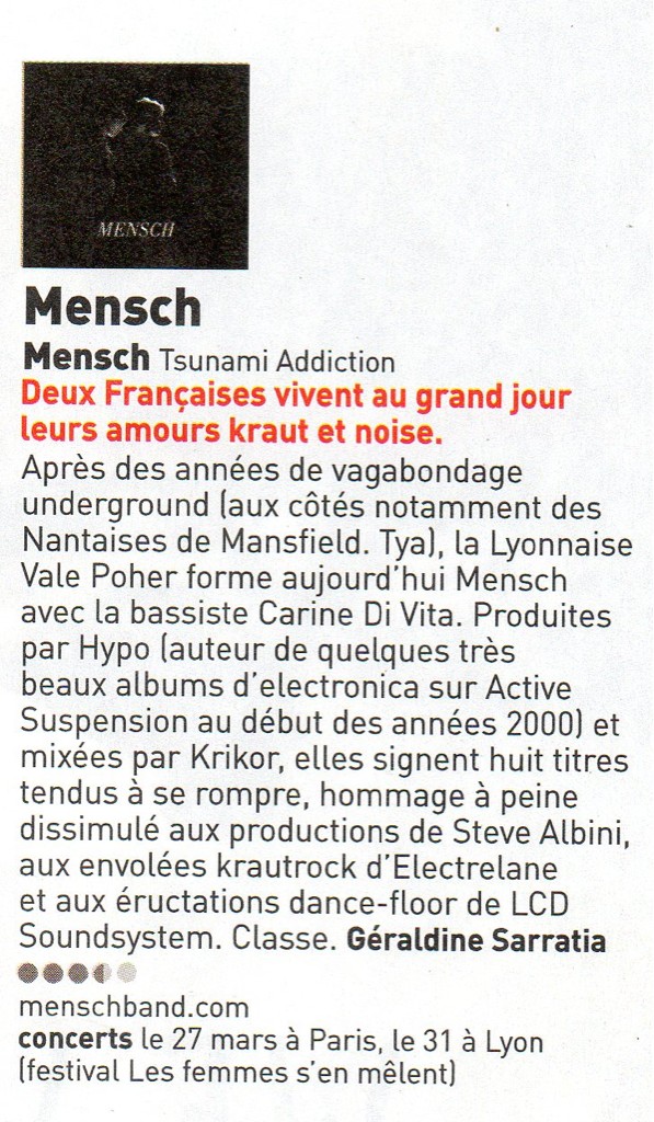MENSCH est un groupe de musique composé de Vale Poher et de Carine Di Vita. Myspace Mensch