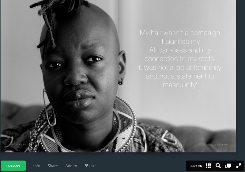 L’interview fleuve en pages centrales porte sur la vie de Skye, qui est née au Zimbabwe. Extraits :
