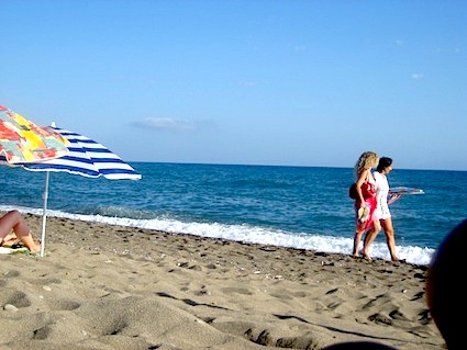 Brève parenthèse mythique (en fin de compte vous partez en Grèce, donc la myologie fait partie du voyage) : vous avez surement des copines qu’y sont déjà allées, ou mieux des copines qui connaissent quelqu’un qu’y a été. Et bien, c’était mon cas. Attention, les légendes les plus extraordinaires circulent à propos de Lesvos. La première c’est surement celle qu’il ne faut pas y aller en couple. Si un couple résiste à une vacance à Lesbos, alors c’est du sérieux. Nous avons croisé les doigts. Mais dans la série j’ai entendu dire, il y a de la place pour tout. Quelqu’un d’autre m’a juré qu’il ne faut surtout pas y aller dans l’esprit d’y rencontrer une girlfriend, qu’il n’y a que des dykes en couple ou des plus âgées qui ne se rasent pas. Nous on s’est dit : cool !! Pour finir, une autre me confirmait qu’au contraire le mode de vie lesvien est : réveil à 12h, alcool à partir de 17h et une fille différente chaque nuit. Wow ! Bref, on va voir.