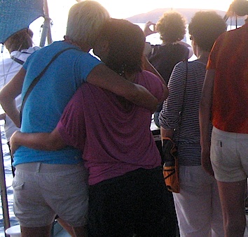 Je reste très digne à attendre pendant environ 30 minutes que le bus démarre. Tout le monde semble enfin monter à bord, y compris ma gilfriend qui est devenue très copine avec une dame grecque au premier rang.