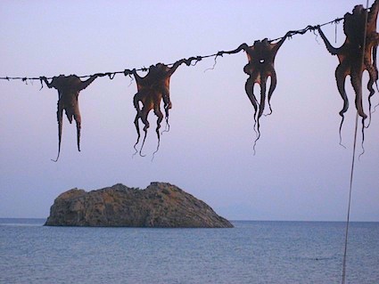 Toutes les tavernes ou petits réstos de la ville se trouvent le long de la plage. On mange bien et pas cher partout. Nous on a beaucoup aimé le Blue Sardine. La vue est a couper le souffle. Par vue on entend le panorama de l’ile évidemment, mais également les voisines de table. Parce que parsemé au milieu de quelque couples hétéro ou de familles, il y a en effet un grand nombre de lesbiennes ou de filles qui ont un look très, très particulier, qu’on dirait, sans vouloir faire des généralités, qu’il s’agit de lesbiennes.
