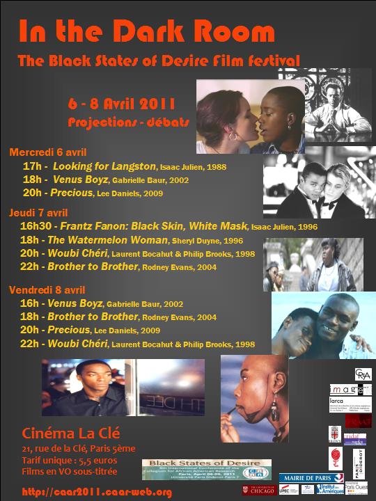 Tous les films ont été produits de manière indépendante à l’exception de Precious, adaptation du bestseller de l’auteure lesbienne Sapphire, qui pourrait être présente à la conférence et dont le courage narratif et cinématographique n’a rien à envier au reste de la programmation. L’indépendance et les difficultés économiques correspondent à la réalité de la production de films noirs queer depuis vingt ans et s’inscrivent dans la politique de programmation du cinéma d’art et essai qu’est La Clef. (site CAAR)