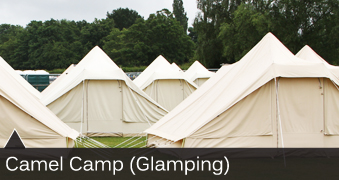 - CAMEL CAMP ou "Glamping", un mélange de Glam et Camping. Les tentes sont déjà montées, d’un style militaro-désertique du plus bel effet. Moins loin des lieux d’animation, mais quand même sous toiles. On est en Angleterre, hein, pas au Maroc...
