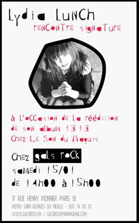 samedi 15 janvier à 14h chez les Gals Rock : RENCONTRE / SIGNATURE > LYDIA LUNCH