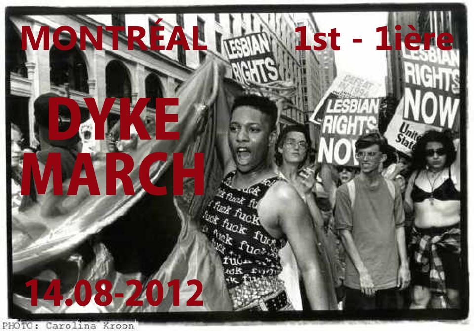 Dans l’esprit des Lesbian Avengers qui ont organisé la 1ière Dyke March à Washington en 1993, sortons en grande et en gang du placard ! Lesbiennes de partout, de tous âges et de toutes cultures, venez écrire l’histoire ! On se fera entendre dans tout le Québec. On marchera ensemble et pour touTEs celles à qui les oppressions ont brisé le coeur et le corps. On criera notre fierté d’être qui nous sommes, dans toute notre diversité. ON VOUS ATTEND !