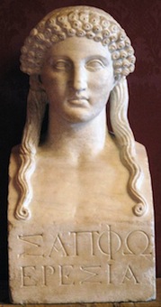 Sappho était probablement une femme fascinante et très intelligente. Elle aurait écrit beaucoup de poèmes, dont la plupart on été détruits par un Pape fervent inquisiteur. Malgré cet acharnement contre son œuvre jugé immorale, elle a été sans doute la première femme rock-star planétaire. Un peu comme Madonna, sa notoriété était énorme all over the world et à travers les époques. Les égyptiens se faisaient inhumer avec les poèmes de Sappho enroulés au corps, que par la suite devenait momie. Même si certains disent qu’elle se suicida par amour d’un mec, il (me) paraît plus crédible de suivre l’interprétation de Claude Cahun que dans son livre « Héroïnes » raconte sa version, la plus drôle, de la fin de Sappho : elle se serait effectivement hissée sur un rochet et fait semblant de se getter à la mer. En réalité, caché derrière ledit rochet, elle serait rentrée chez elle et aurait vécu (enfin) tranquille jusqu’à sa mort à Lesvos entourée par ses copines. Pas bête.