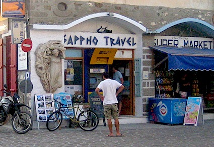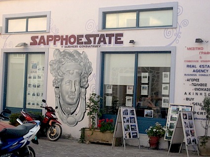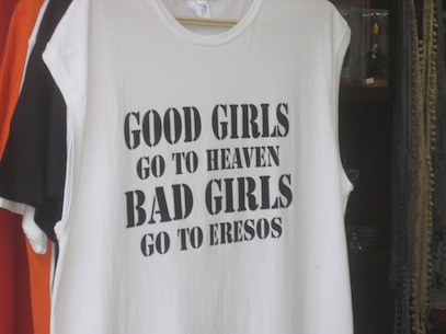 Hier on venait tout juste d’arriver à Skala Eressos, la capitale lesbienne de l’ile de Lesvos. Plein d’endroits ici s’appellent Sappho quelque chose. Sappho Hotel, Sappho Travel, etc.. Au debout c’est drôle, puis ça devient un peu inquiétant.