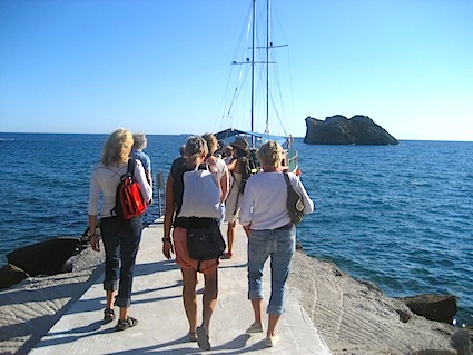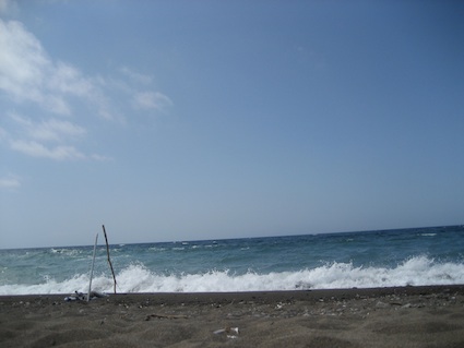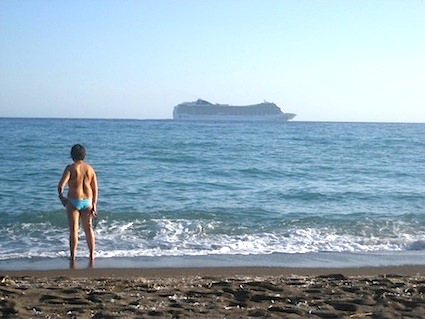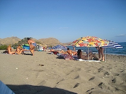 Juste un dernier truc. Avant de partir, ma copine Mariella m’avait raconté le mythe définitif de Skala Eressos. Elle m’a dit qu’une année d’il y a longtemps, alors qu’elle y passait ses vacances, un beau jour du mois d’aout, un grand bateau de croisière avait jeté l’ancre dans la baie. Elle m’a dit que pendant que avec ses copines elles bronzent nues sur la plage, de ce grand bateau étaient descendues une quantité incongrue de femmes. Des canots avaient en effet débarqué sur la plage et en quelque minutes Mariella et ses copines s’étaient retrouvées entourées par un épais troupeau de baleines, c’est à dire des américaines de grande taille (par rapport à Mari qui fait 1m60 à peine). C’était la Olivia Cruise, la croisière 100% lesbienne. J’ai passé toutes les vacances à l’attendre, en vain. C’est surement à cause de la crise.