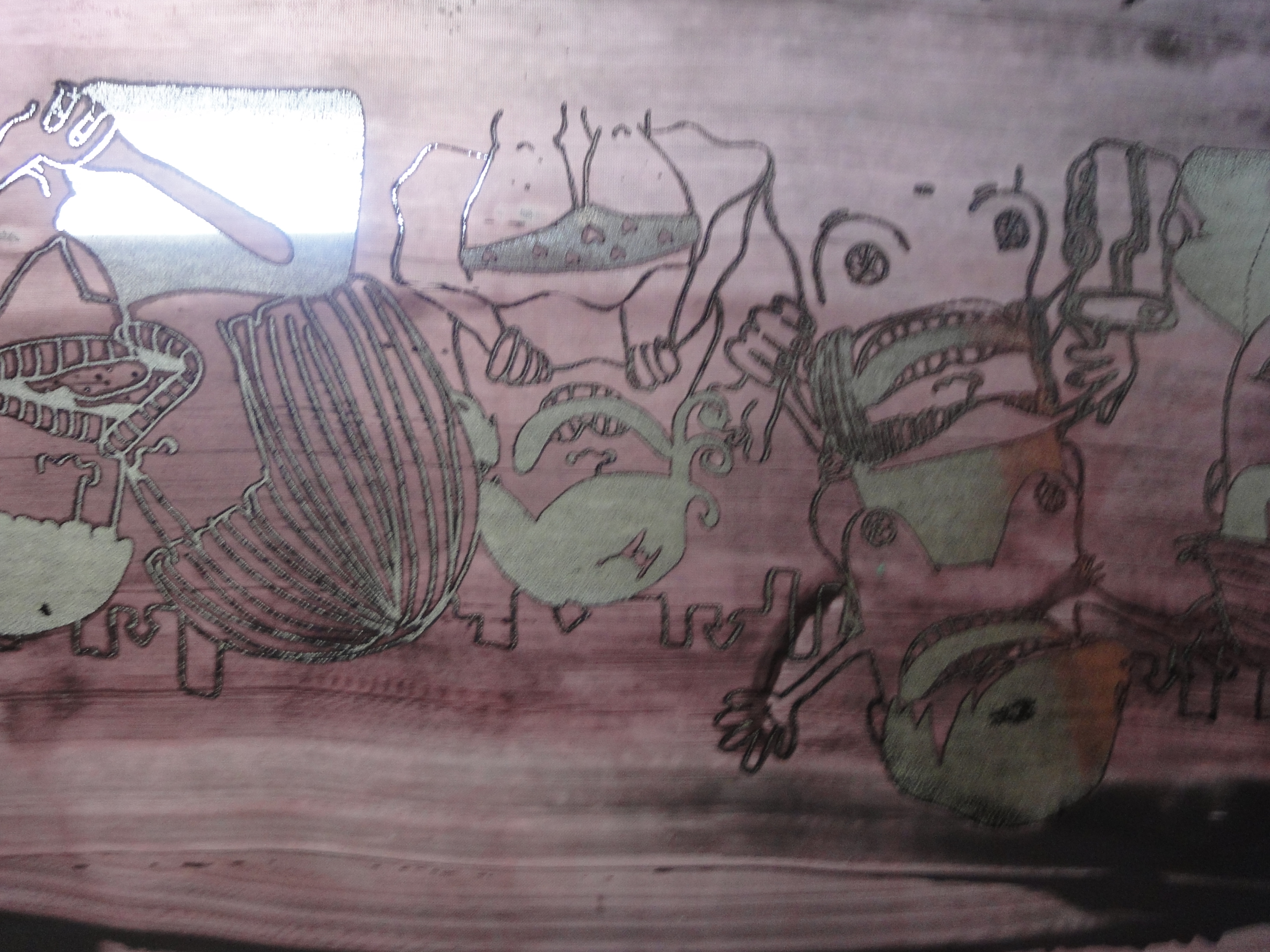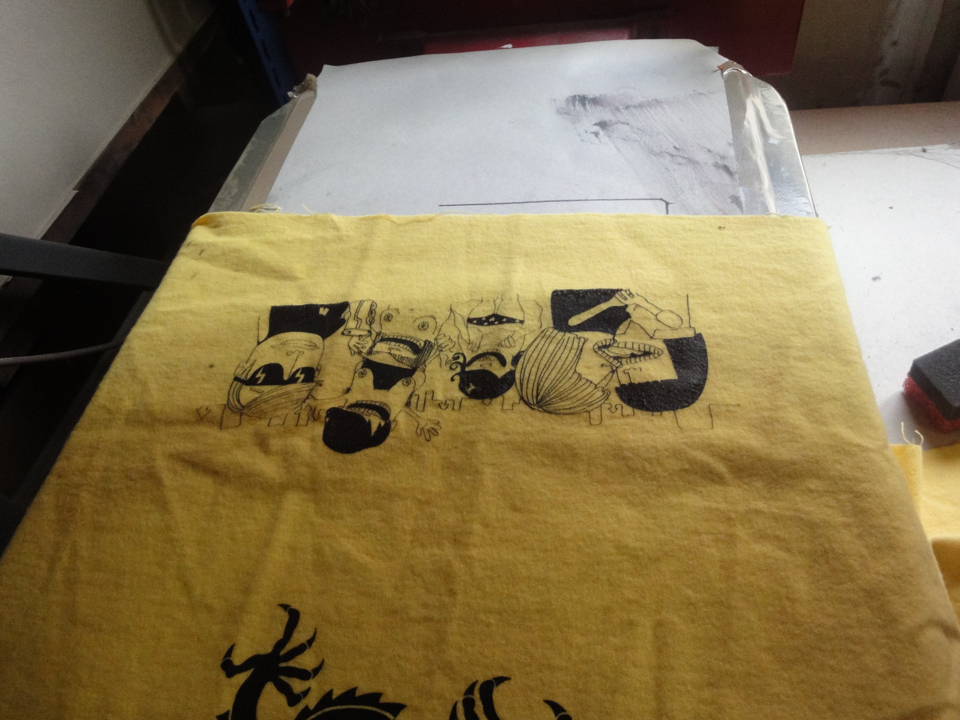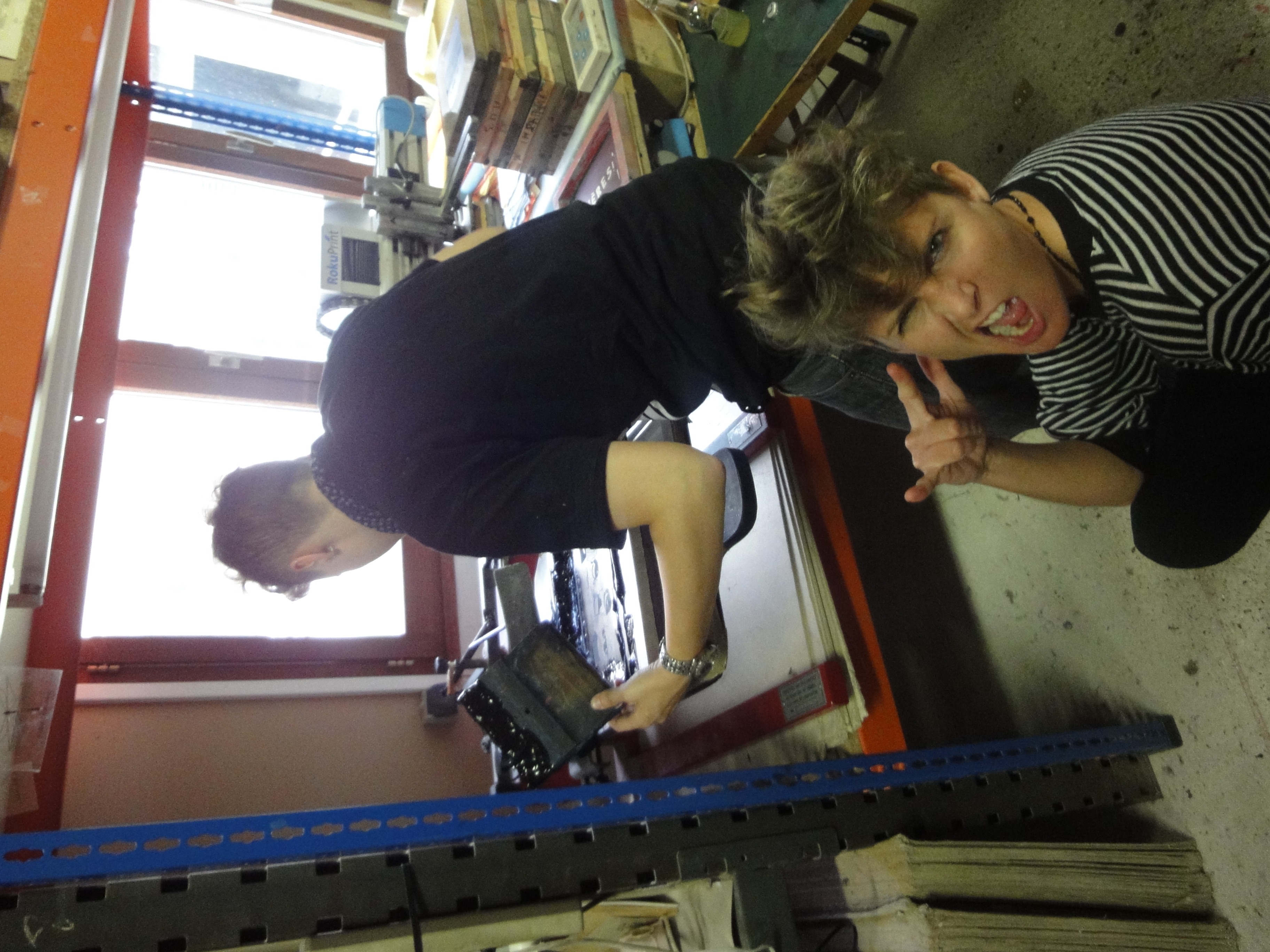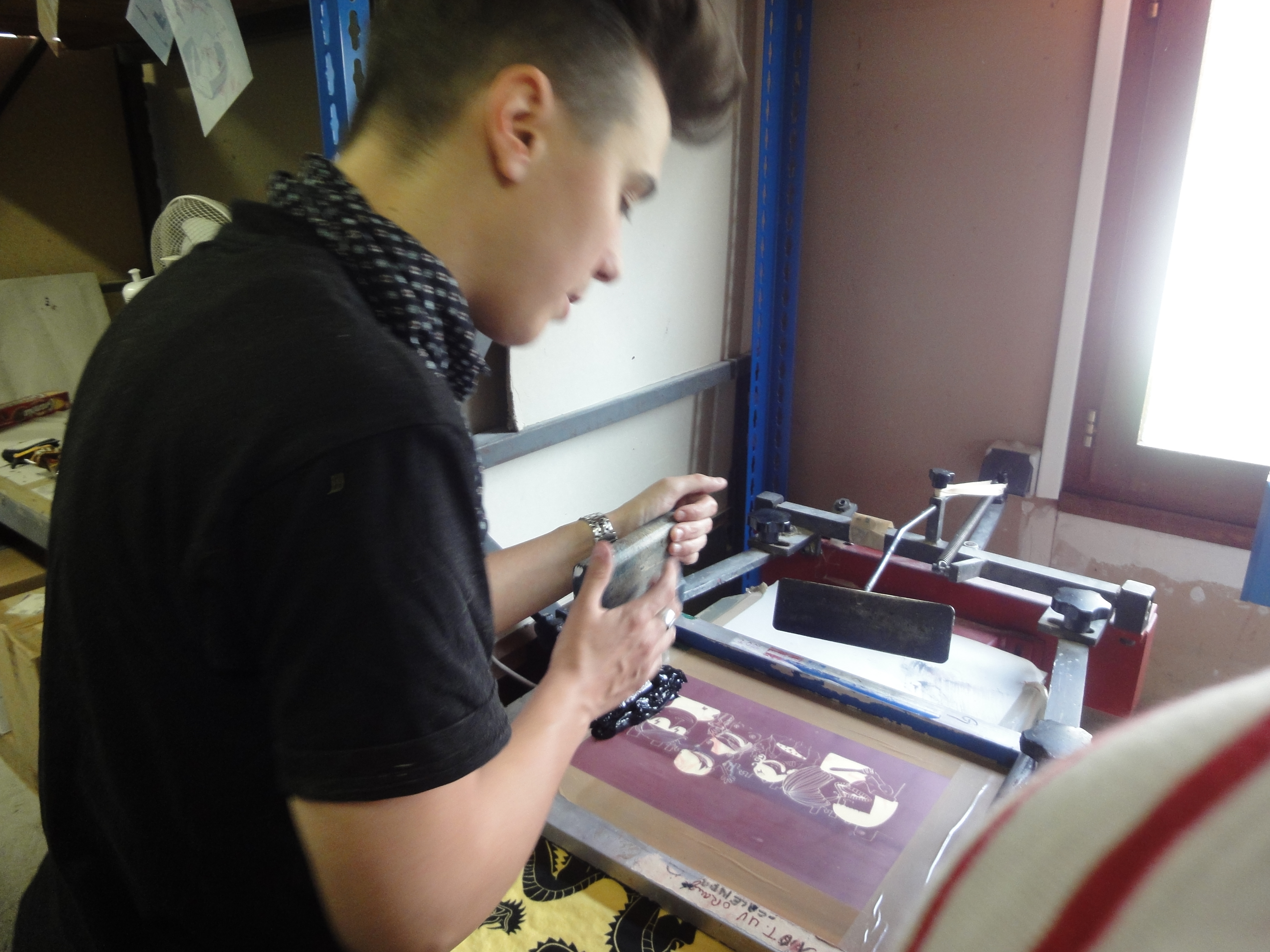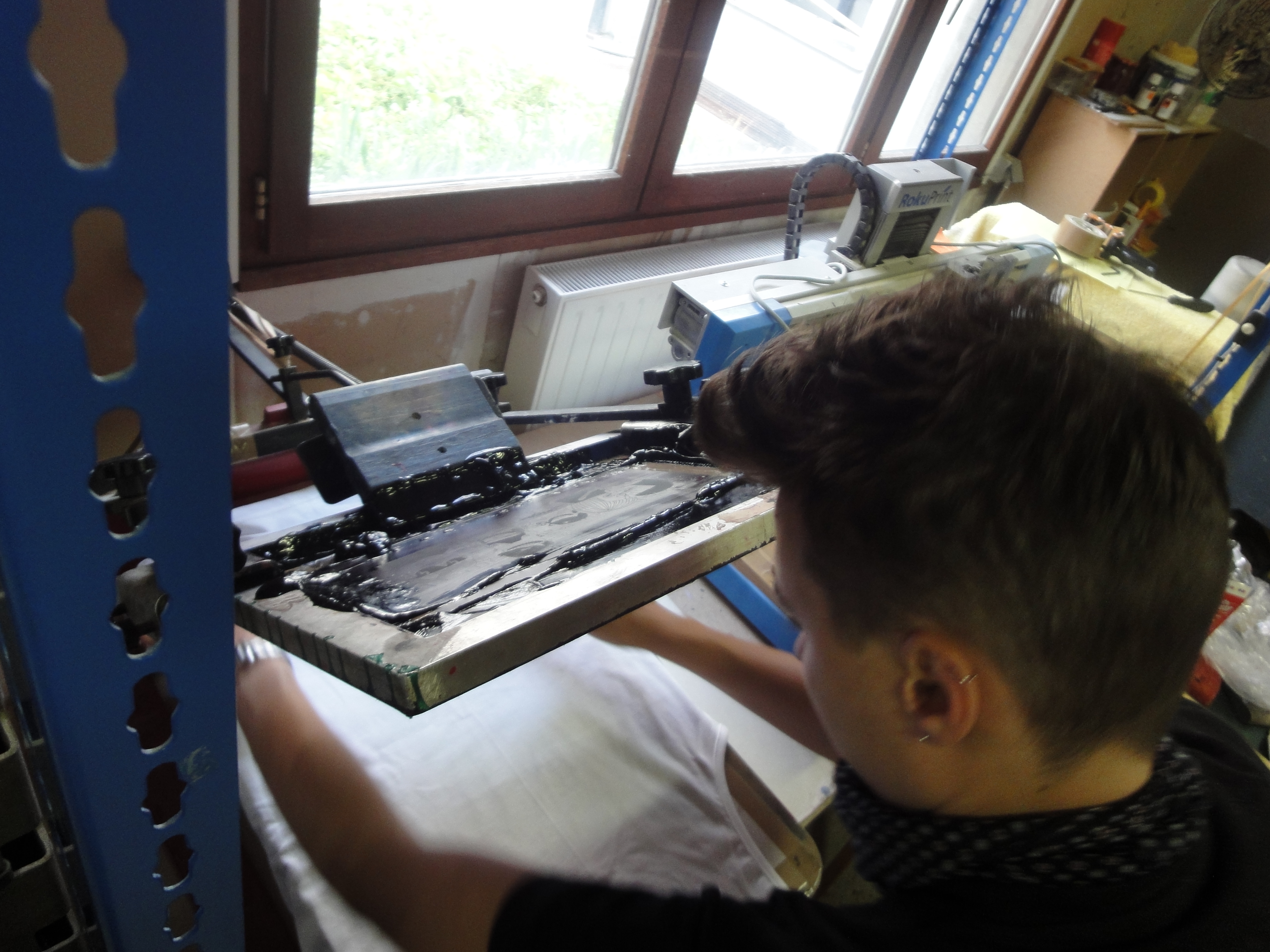 3/ on fait passer l’encre à travers le cadre à l’aide d’une raclette