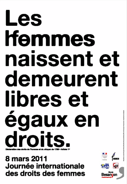 Votez pour la meilleure affiche de "la journée internationale des femmes" sur le site "Journée de la femme". Vous pouvez aussi les imprimer et les afficher partout dans votre quartier, votre ville, votre pays...