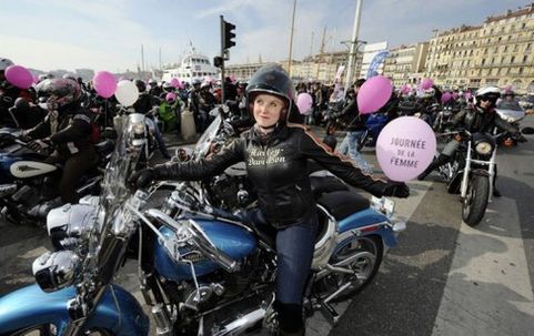 " 300 motardes, qui avaient orné leur deux-roues de ballons roses et blancs barrés du slogan "Journée de la femme", en référence à la journée internationale de la femme fêtée le 8 mars, se sont rassemblées sur le Vieux-Port avant de s’élancer pour un périple à travers la cité phocéenne. "L’objectif de ce rassemblement est de donner une image forte de la femme à l’heure où tant de choses pourraient nous ramener en arrière. Il s’agit de mettre en valeur des femmes qui ont du tempérament, qui ont une certaine façon de vivre ", a expliqué à l’AFP Annie Yahi, 44 ans, fondatrice et co-présidente de l’association "Toutes en moto", à l’initiative de la manifestation". (Express)