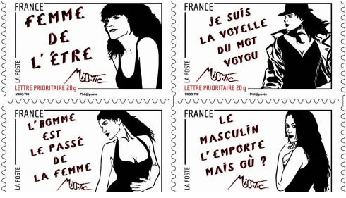 "La Poste émettra le 8 mars un carnet de 12 timbres autocollants représentant des portraits de femmes de l’artiste urbaine Miss.Tic .