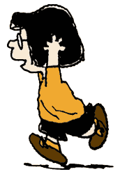 Peppermint Patty était toujours la plus forte de l’équipe de baseball, elle était casse cou et nulle a l’école. Elle s’habillait comme un garçon, se faisait respecter en mettant des coups de poing. Pendant quelque temps elle a été amoureuse de Snoopy lui même, qu’elle prenait pour un petit garçon bizarre, c’est pour dire son trouble interne qui rassemblait tant au mien de l’époque. Elle était surtout tout le temps fourré avec sa meilleure potte Marcie, intellectuelle à lunettes, nulle en sport qui l’appelait, dans la plus pure symbolique lesbienne S/M, "Sir".