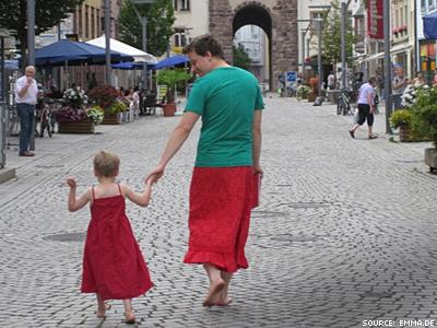 "A German father said that he sometimes wears skirts to support his son, who also prefers to wear skirts and dresses.